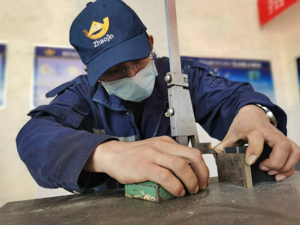 4月24日,從招金礦業各分子公司133名候選人中脫穎而出的8名鉗工選手“狹路相縫”大尹格莊金礦維修車間,一場2020年度首項沖出疫情陰霾籠罩下的技能競賽之一——鉗工比武在此拉開序幕。根據比武要求,競賽采用個人參賽形式,内容爲技能操作比賽,适當增加相關的新知識、新技能,由參賽選手在規定的時間内按圖紙要求獨立完成試件加工。比賽現場,選手們根據圖紙尺寸要求細心的在原材料上“測繪着”,測繪完畢後又以最快的速度對原材料進行劃線、鑽孔、鋸锉等加工,選手們利用手中的工具熟練地錘打、鋸割、锉磨、組合直到手中的工件漸漸成型。所有環節動作娴熟,各道程序環環相扣,現場氣氛緊張而激烈。鋸锉的“吱吱”聲,敲擊的“铛铛”聲交彙在一起像在演奏一場别樣的“交響樂”。經過緊張“交手”,大尹格莊金礦員工張俊棟獲得維修鉗工競賽個人第1 名,成爲年度首項技能競賽的個人冠軍。