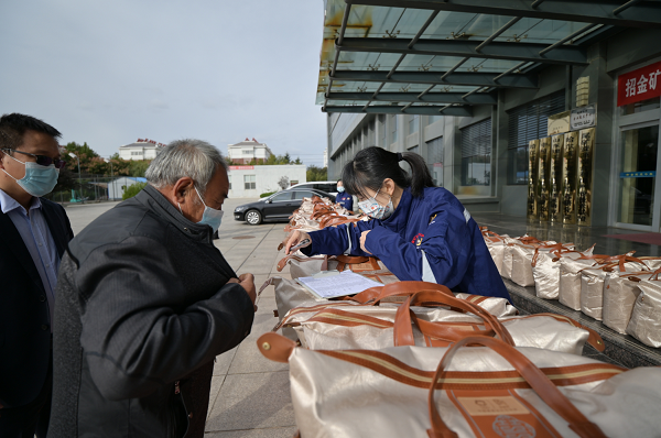 10月16日,在招金礦業股份有限公司技術中心辦公樓前,忙碌的工作人員着裝整齊、将提前準備好的一箱箱精美禮品有序地擺放在發放地點。上午8時左右,不時有員工父母陸續到達慰問品發放現場,在工作人員的引導下,老人們井然有秩序地領到了慰問品,臉上流露的笑容表達了對企業關愛老人的高興之情。