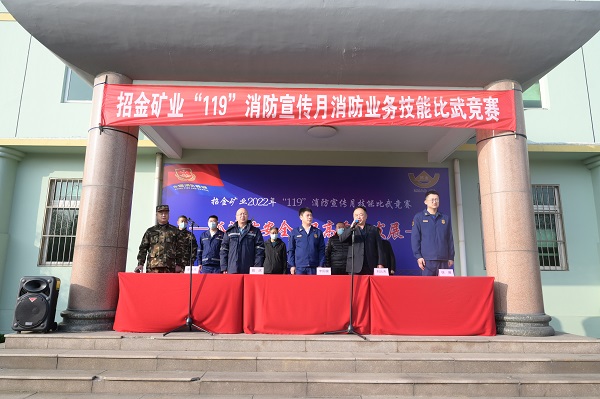 11月25日上午,由招遠市消防救援大隊主辦的“119”消防宣傳月消防業務技能比武競賽活動在招金礦業股份有限公司金翅嶺金礦舉辦。招遠市消防救援大隊長李國豪爲本次活動緻辭、招金礦業股份有限公司安全總監劉雲傑出席開幕儀式,公司9家企業的消防管理人員參加本次比武。