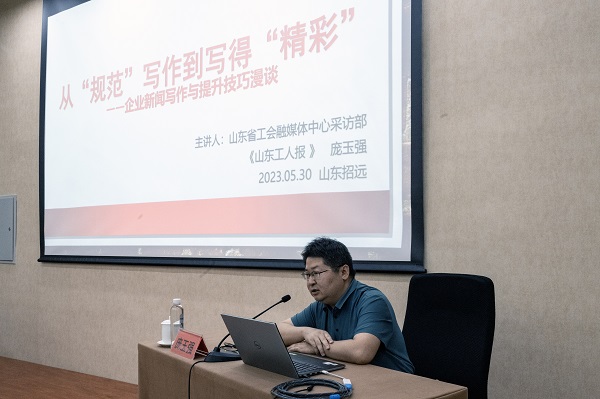 爲準确把握新時代企業新聞宣傳工作的新任務、新要求,切實報道出有思想、有溫度、有品質的新聞作品,讓輿論引導更接地氣、受歡迎、傳得開。5月30日,招金礦業組織開展2023年宣傳條線專業培訓,特邀山東省總工會融媒體中心采訪部副主任龐玉強老師爲大家授課,公司黨群事務部經理朱亞楠作開課動員,埠内、外企業共120餘人以線上及線下形式參加培訓。