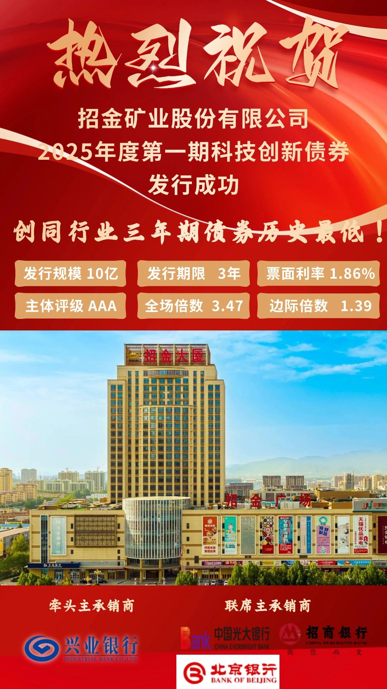 在當前寬松貨币政策下,招金礦業精準把握發行窗口,以創紀錄的低利率完成融資,不僅降低了财務成本,也爲同行業企業樹立了新的融資标杆。