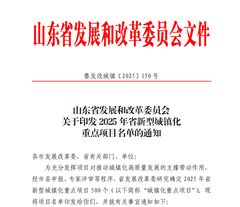 據了解,山東省新型城鎮化重點項目建設作爲推進全省城鎮化高質量發展的重要載體,以新型城鎮化爲牽引推動城鄉融合發展,有利于推動塑造新型工農城鄉關系,加快構建新發展格局,促進城鄉區域共同繁榮。此外,入選項目将在省級重點項目申報、專項債發行、信用貸款等方面優先獲得上級扶持。