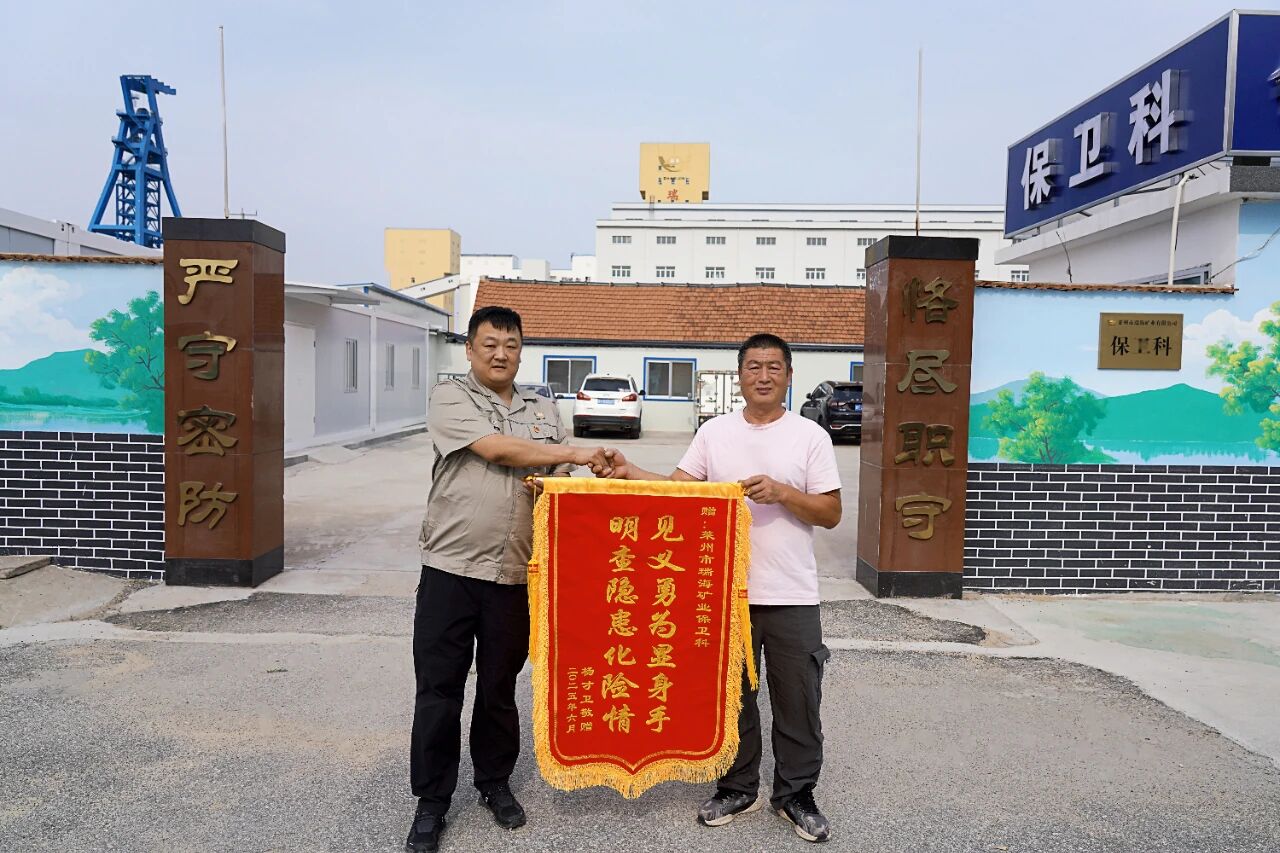 近日,司機老楊将一面印有“見義勇爲顯身手,明察隐患化險情”的錦旗送到了萊州市瑞海礦業有限公司分管保衛負責人的手中。“感謝瑞海礦業幫我保住了一車貨物,更保住了我們的公益林”緊緊握住負責人員的手,老楊的感激之情溢于言表。