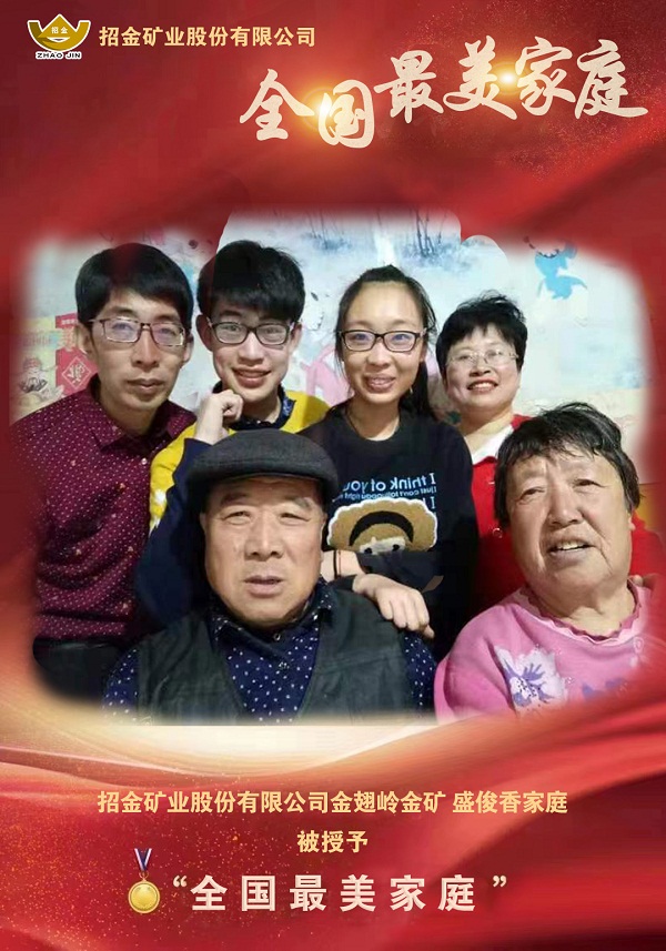 招金礦業股份有限公司金翅嶺金礦盛俊香家庭榮獲“全國最美家庭”榮譽稱号。